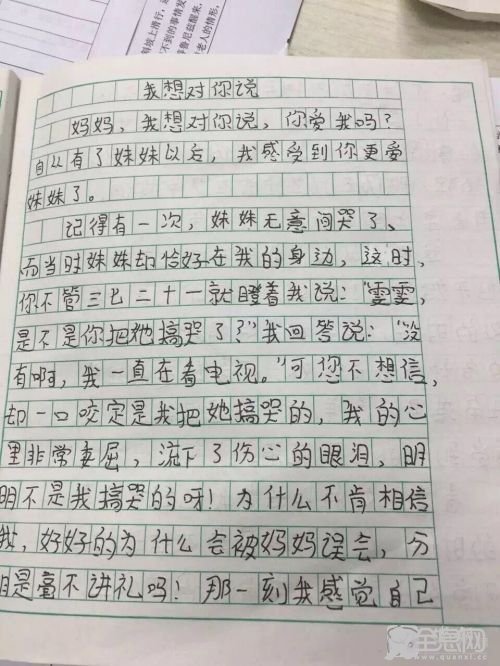 “妈妈,我想对你说,你爱我吗?自从有了妹妹以后,我感受到你更爱妹妹了。 ”
