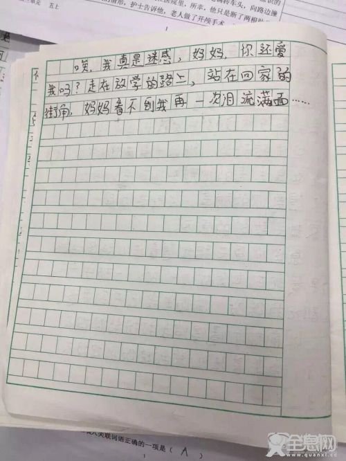 “唉,我真是疑惑,妈妈,你还爱我吗?走在放学的路上,站在回家的街角,妈妈看不到我再一次泪流满面……”