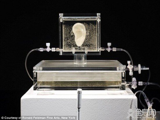 艺术家Diemut Strebe创造出了梵高耳朵生物复制品,其基因样本取自艺术家梵高弟弟的玄孙。该耳朵可以通过电脑处理器,利用神经脉冲,达到听力效果。今秋,这场名为Sugababe的展会在纽约 Ronald Feldman Fine Arts中心开幕,其创作者表示这次展会不仅仅是技术展览,而是一场盛大的科学盛宴。 Strebe提到,“我不确定是否每个人都能领会这种科学与生物技术内涵。”该生物基因耳朵是由梵高的直系亲属Lieuwe van Gogh的软骨细胞组织生成。随后,利用电脑图像技术,Strebe按照梵高自画像里的耳朵形状制作出了该基因耳朵。在没有身体支撑的情况下,Strebe利用电脑处理器,可以激发神经脉冲,使梵高的最新耳朵复制品具有听力功能。