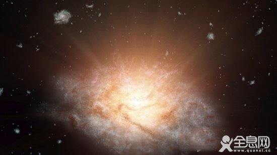 这个发光总量超过 300 万亿个太阳的遥远星系是迄今发现的最亮星系,它隶属于最近才被美国宇航局“宽视野红外巡天探测器(WISE)”发现的新天体分类——极亮红外星系(ELIRGs)。