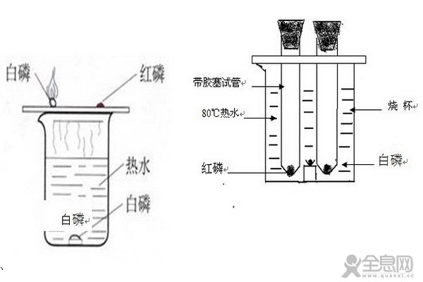 因此,烧杯上的白磷能被大烧杯中的热水加热到着火点的温度;而红磷的着火点在200 。C以上;仅靠热水的温度很难达到的。通过对比,说明燃烧需要达到着火点的温度