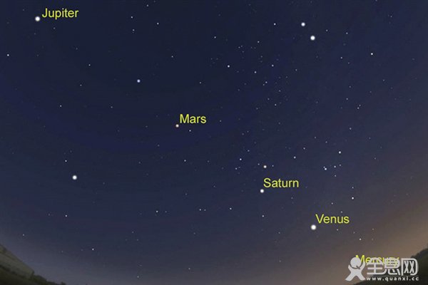 从现在起到2月20日,如果你在北半球日出前6点至6点半就早早起床,仰望从东南方到西南方的星空(晴朗的话),就会发现太阳系的五大行星会同时出现在你的视野中。