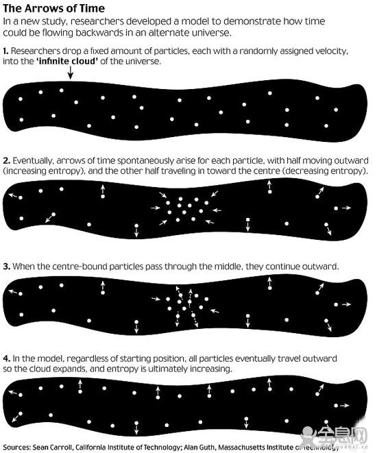 这两位物理学家——加州理工学院的肖恩·卡罗尔和麻省理工学院的阿兰·古斯——采用熵作为模型的基础,发展出一种显示多个时间箭头同时出现的方法,并解释了它们如何以相反的方向流动。