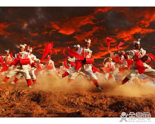 安塞腰鼓由来已久,本是古代军旅以增军中士气及传递情报所用,这里是用来表达胜利的欢呼和丰收的喜悦。颇密的击鼓声,强悍的步伐,变幻的阵势,雄壮的呐喊,尽现男子阳刚之美,在国际上极富盛名。