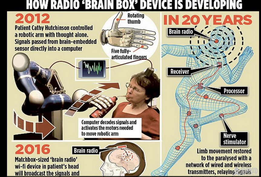 韦斯生物与神经工程中心的主管多诺霍教授表示,他们研制出一个芯片装置,可植入在病人头部皮下,接收神经讯息,再像WiFi般发出讯号,从而操控机械义肢,甚至向植入神经刺激器的四肢发信号,刺激肌肉活动。