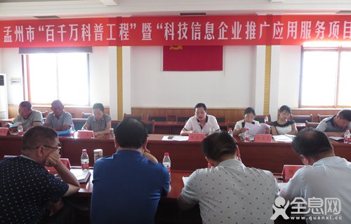 6月22日,孟州市科协召开了由各乡镇办事处科协主席、市直全民科学素质成员单位负责人及农村科普示范基地、农村专业技术协会、农村科普带头人代表参加的“百千万科普工程”暨“科技信息企业推广应用服务项目”动员会。