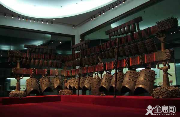 随州曾侯乙编钟是我国目前出土数量最多、重量最重、音律最全、气势最宏伟的一套编钟,堪称“编钟王”。凡有机会耳闻目睹过的人,无不为此千古绝响惊叹叫绝,赞誉它不愧是中华民族文化艺术之瑰宝,世界音乐史之奇迹。在曾侯乙编钟上,刻有关于记事、标音、律名关系的错金铭文2828字,加上钟架笋梁(横梁)、编悬配件上的铭文、磬铭文、磬盒铭文总字数3775字,其内容是先秦乐律的重要资料,被专家学者称之为“一部珍贵的音乐理论论著”,“一部不朽的古代乐律学典籍”。64件编钟(楚惠王送给曾侯乙的钟除外),每件都能发出两个乐音,每钟双音并呈和谐的大小三度关系,其音阶相当于现代国际上通用的C大调。全套编钟音质纯正、音色优美、音域宽广,达五个多少8度(C2——D7),12个半音齐全、且有变化音,能旋宫转调,演奏各种采用和声、复调以及转调手法的中个乐曲。实践证明:早在春秋战国时期(而不是此前有些专家认为是秦汉时代,更不是来自古希腊传入的泊来品),我国音乐就已发展到了相当成熟的阶段,在7声音阶、5个8度音、12个半音以及旋宫转调的表现手法上,就已形成理论与实践。因而,编钟的出土,使用权传统乐律学不得不重新估价,世界音乐史不得不重新改写。著名音乐家贺绿汀说:“曾侯乙编钟的出土,中国古代音乐史的某些方面需要重新研究。”