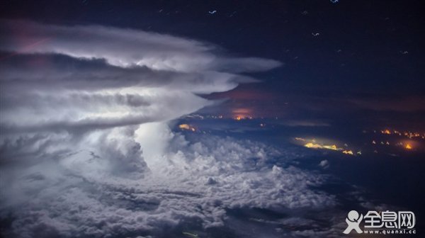 日前,一位厄瓜多尔航空公司的飞行员Santiago Borja,在飞行的波音747客机上,拍下了壮观的太平洋低气压,同时还捕捉到了闪电交错的瞬间,如雷霆万钧般的火光,令人惊艳。