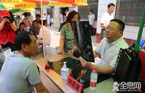 简短的仪式后,按照既定计划,专家分三组分别在滑县骨科医院、半坡店乡黄塔村、半坡店乡东老河寨村展开活动。义诊现场,专家们不辞辛苦,顶着炎炎烈日,对前来咨询的骨折、颈肩腰腿疼、股骨头坏死等骨病患者耐心询问病情,查看病例,审读片子,指导用药。在黄塔村的小广场上,来自郑大一附院骨科主任医师刘宏建等7位科普宣讲专家,分别用通俗易懂的语言给村民们讲述骨折、关节炎、骨质疏松、腰椎间盘突出症等骨科常见病防治,其形式和内容深受村民欢迎。除两个固定的义诊地点,活动还成立了两个义诊小分队,登门探望活动不便的病人,为病人做康复指导。