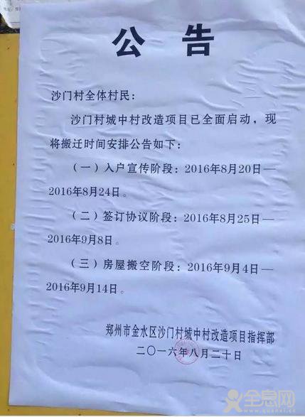 最近这些日子,郑州陈寨村的搬迁公告赚足了眼球,这是一个号称中原最大的城中村,她的变革,的的确确能够引起郑州北区一场小型“地震”,毕竟,30万人的生活足迹将由此改变。作为陈寨的近邻——沙门村,搬迁指挥部也已经成立,改造的脚步正在悄悄临近。