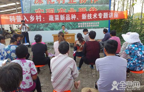 为增强农民科学素质,帮助贫困群众提高产业化水平,使蔬菜产业真正成为贫困群众强村富民的源动力,9月22日,市科协党组成员、纪检组长张冠楠带领驻村第一书记和驻村工作队员,并邀请市农科院园艺研究所所长、河南省大宗蔬菜产业技术体系驻马店综合试验站站长、市农业推广协会副会长姜俊研究员,深入结对帮扶联系点正阳县彭桥乡大刘村的产业扶贫基地河南省青青蔬菜种植有限公司,开展了2016年驻马店市“全国科普日”系列活动暨科普入乡村:蔬菜新品种、新技术专题讲座。青青蔬菜公司技术管理及工作人员、部分贫困户和大刘村两委班子成员等40余人聆听了专题讲座。