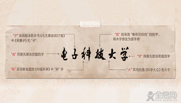 电子科技大学的校名拼凑则更为繁琐。据校办的郭民邦回忆,为发展我国国防工业,1955年,中央第二机械工业部拟筹建一所培养无线工业技术人才的高等学校,成立成都电讯工程学院。校方先后请毛泽东、时任第二机械工业部部长赵尔陆题写校名未果,后经介绍找到时任中国科学院院长郭沫若题写。