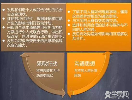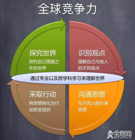全球竞争力是通过专业以及跨学科学习来理解世界,从探究世界、识别观点、沟通思想到采取行动,这是一个相互关联的思维模式,在解决问题的时候,这几个环节缺一不可。
