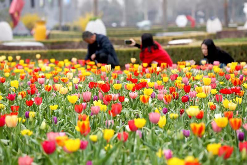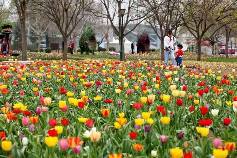 北京植物园:20余万株郁金香花海似锦