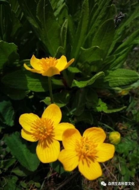 驴蹄草在冷杉-杜鹃群落中也较为常见,草本,金黄色的5瓣或6瓣小花,花单片平展。全草可入药,除风散寒,治周身疼痛。