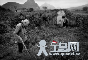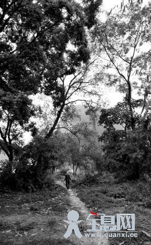 五月的山里,一丛丛酸浆草绽开出血色的花朵,这是一种治疗毒蛇咬伤的草药,山民曾无数次采摘它,但它在人们的指缝间依然顽强地绽放着生命。88岁的韦绍兰骨瘦如柴,一头白发在脑后梳成小辫。她拄着半截竹竿,佝偻着腰沿着田埂跌跌撞撞的向前走着,前方山崖前是一片幽静清冷的荒地,她突然停住脚步表情变得凝重,这里就是她当年被日本人抓走的地方。