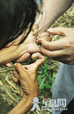 随后,记者沿着山路走了半个多小时才在山腰找到这对兄妹,一间不到两米宽的窝棚、几个麻袋就是他们的栖息之地,蓬头垢面的兄妹俩见到众人则一脸茫然。无论大家如何询问,哥哥始终只是以“嗯”回答,而妹妹则一言不发。记者发现,妹妹始终双拳紧握缩在胸前,由于常年重复这个动作,掌心已被手指甲挖出了四个小坑。