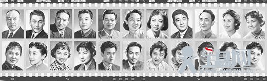从左至右第一排为崔嵬、谢添、陈强、张平、于洋、于蓝、谢芳、赵丹、孙道临、白杨、张瑞芳;第二排为秦怡、上官云珠、王丹凤、祝希娟、李亚林、庞学勤、张圆、金迪、王心刚、田华和王晓棠。