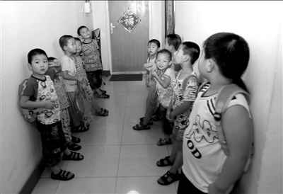 孩子们在民宅改造的黑幼儿园内排队,等待下楼活动。(资料图片)本报记者任峰涛摄