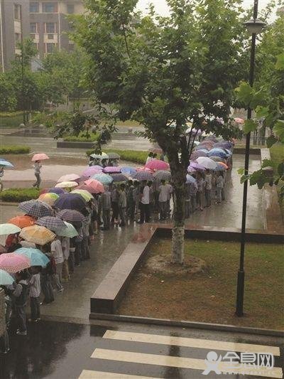 在暴雨中,200多位孩子手举雨伞,相向而立,搭起了一座近200米长的遮雨“彩虹”,没带伞的孩子,通过这座“桥”去到食堂的餐厅就餐。24日,这组拍摄于南京师范大学附中宿迁分校校园内的温馨照片,感动了众多网友,但也有一些网友怀疑这是学校在利用学生作秀。