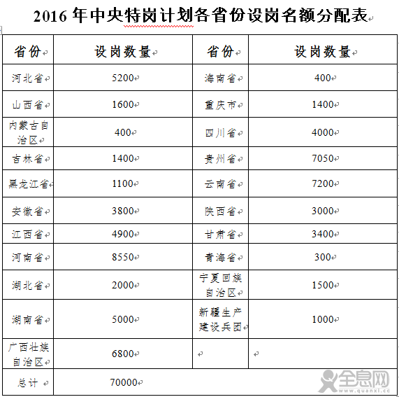 据悉,2016年中央特岗计划实施范围与2015年相同,具体为:《中国农村扶贫开发纲要(2011-2020年)》确定的11个集中连片特殊困难地区和四省藏区县,中西部地区国家扶贫开发工作重点县,省级扶贫开发工作重点县,西部地区原“两基”攻坚县(含新疆生产建设兵团的部分团场),纳入国家西部开发计划的部分中部省份的少数民族自治州以及西部地区一些有特殊困难的边境县,少数民族自治县和少小民族县。特岗计划设岗县(市),必须是教师总体缺编、结构性矛盾突出的县(市)。