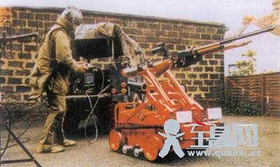 在西方国家中,恐怖活动始终是个令当局头疼的问题。英国由于民族矛盾,饱受爆炸物的威胁,因而早在60年代就研制成功排爆机器人。英国研制的履带式“手推车”及“超级手推车”排爆机器人,已向50多个国家的军警机构售出了800台以上。最近英国又将手推车机器人加以优化,研制出土拨鼠及野牛两种遥控电动排爆机器人,英国皇家工程兵在波黑及科索沃都用它们探测及处理爆炸物。土拨鼠重35公斤,在桅杆上装有两台摄像机。野牛重210公斤,可携带100公斤负载。两者均采用无线电控制系统,遥控距离约1公里。