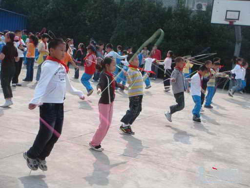 比赛开始前,老师告诉我们:“谁没有跳到150个,以后就得每天练。”我们都异口同声地回答:“好的!”赛前的气氛很紧张,同学们相互拥抱,互相鼓励。