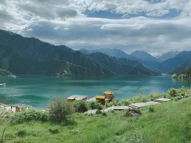 远望天山,美丽多姿,那常年积雪高插云霄的群峰,银光闪闪;那富于色彩的不断的山峦,像孔雀正在开屏,艳丽迷人。